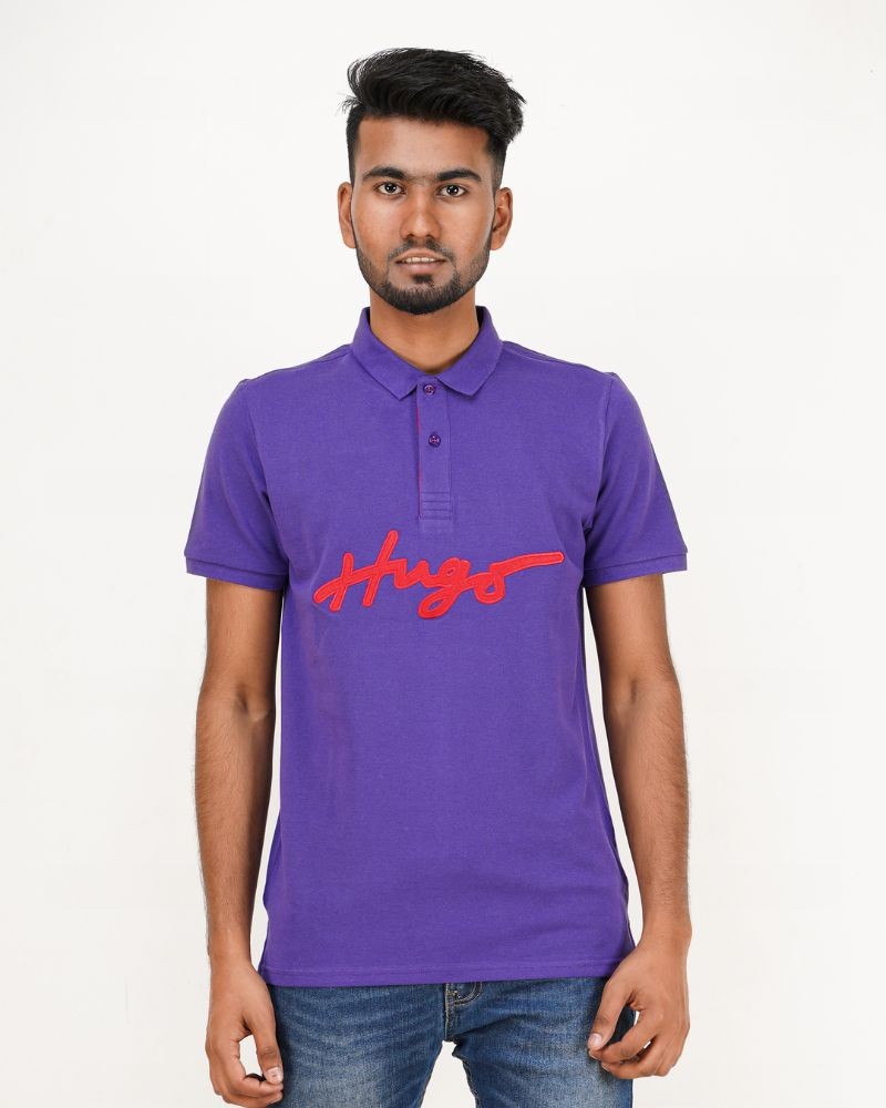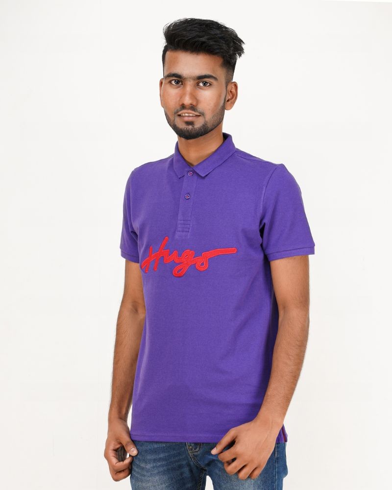 350 view ProductMemmerized Fabric Purple Blue Color Polo Shirt By Hugo Boss