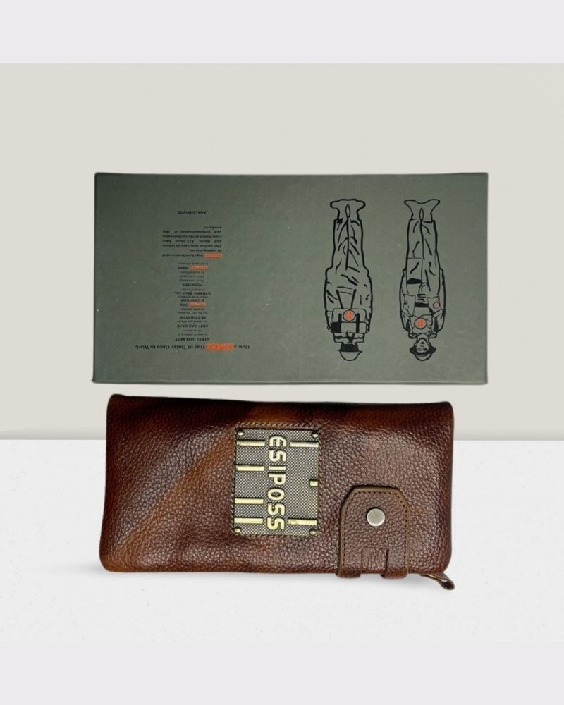 Luxury Premium Quality Esiposs 02 Authentic Branded Chase Pattern Genuine Leather Long Wallet With Branded Packaging